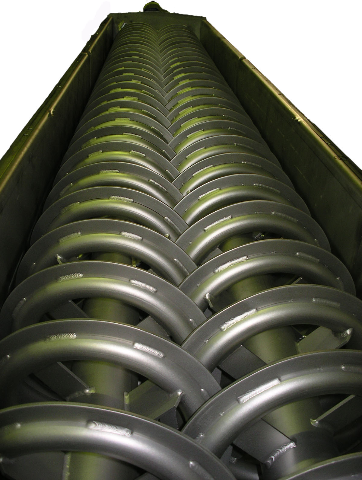 Die Schnecken reinigen sich durch die Doppelschneckenanordnung selbsttätig. Der Wärmeübergang wird erhöht.